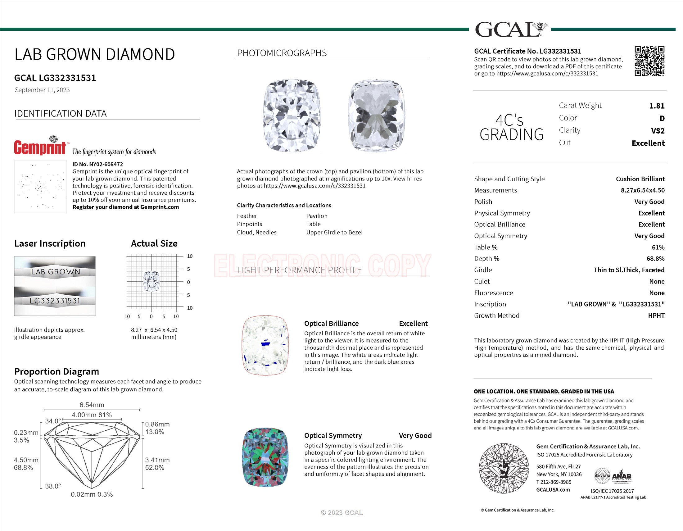 $3,600Save up to $2,686Compare prices for this 1.81 carat cushion lab grown diamond from 2 stores. Prices range from $914 to $3,600. Save up to $2,686 by comparing offers below.