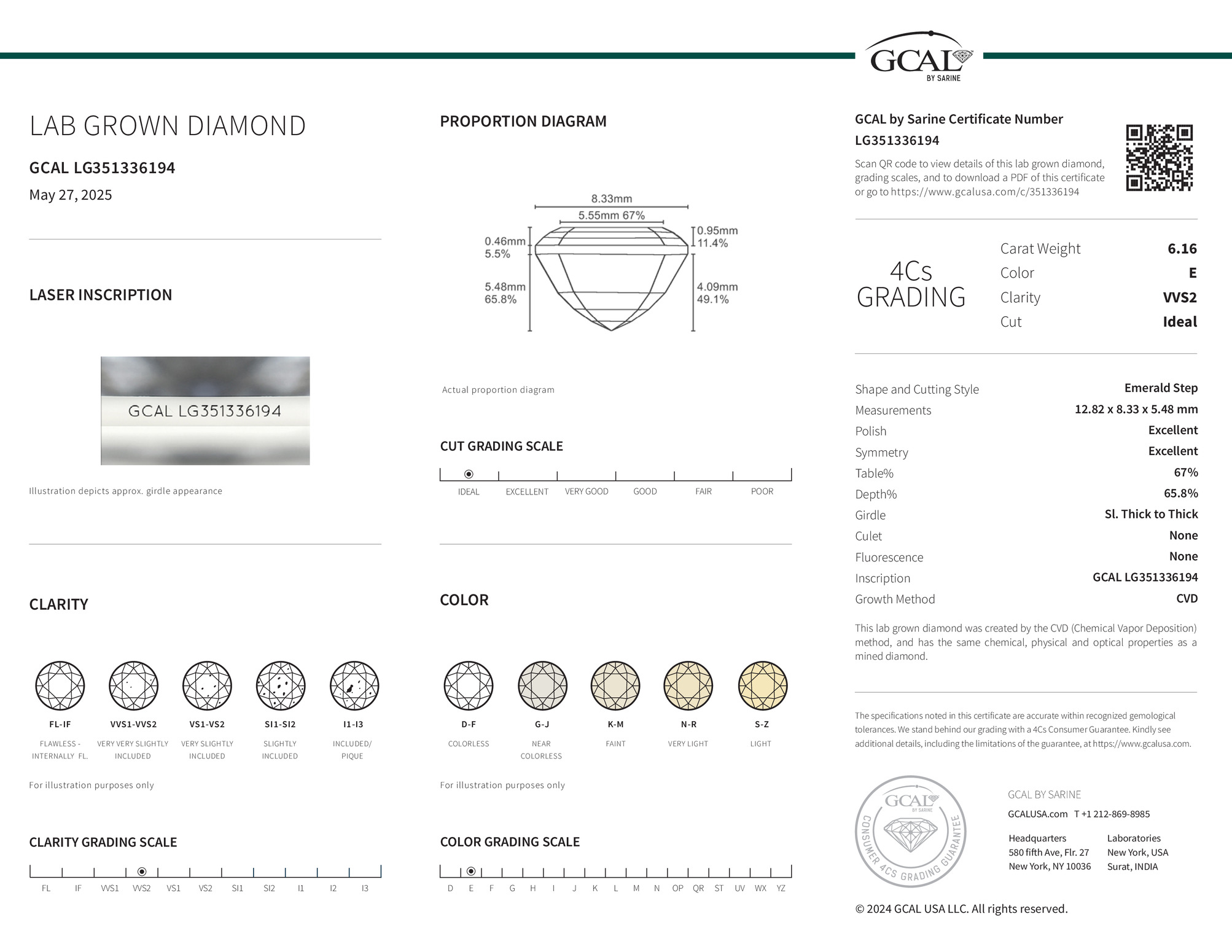The GCAL certificate (#351336194) is an independent grading report that verifies this diamond's carat weight, color, clarity, cut, and other physical properties. It serves as a trusted third-party guarantee of the stone's quality. Always verify the certificate number on the issuing lab's website before purchasing.