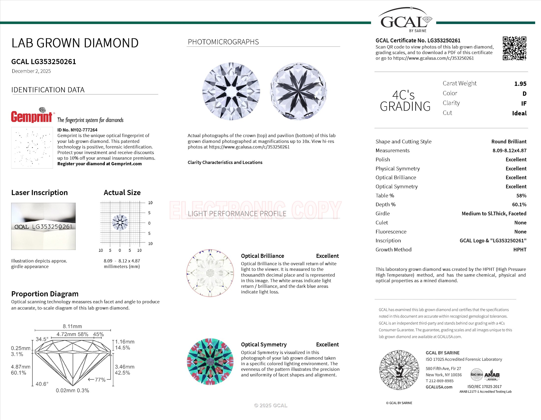 The GCAL certificate (#353250261) is an independent grading report that verifies this diamond's carat weight, color, clarity, cut, and other physical properties. It serves as a trusted third-party guarantee of the stone's quality. Always verify the certificate number on the issuing lab's website before purchasing.