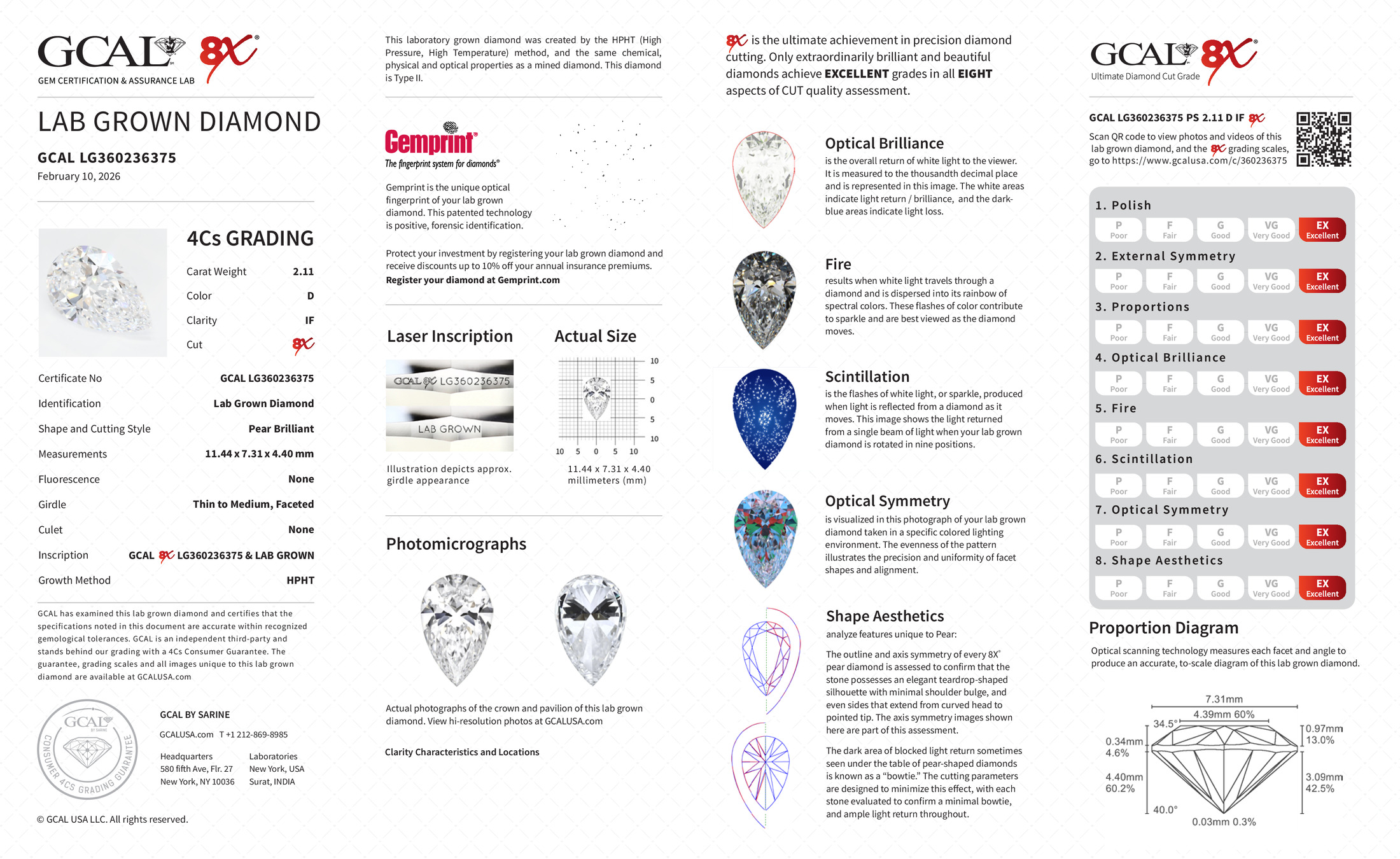 The GCAL certificate (#360236375) is an independent grading report that verifies this diamond's carat weight, color, clarity, cut, and other physical properties. It serves as a trusted third-party guarantee of the stone's quality. Always verify the certificate number on the issuing lab's website before purchasing.