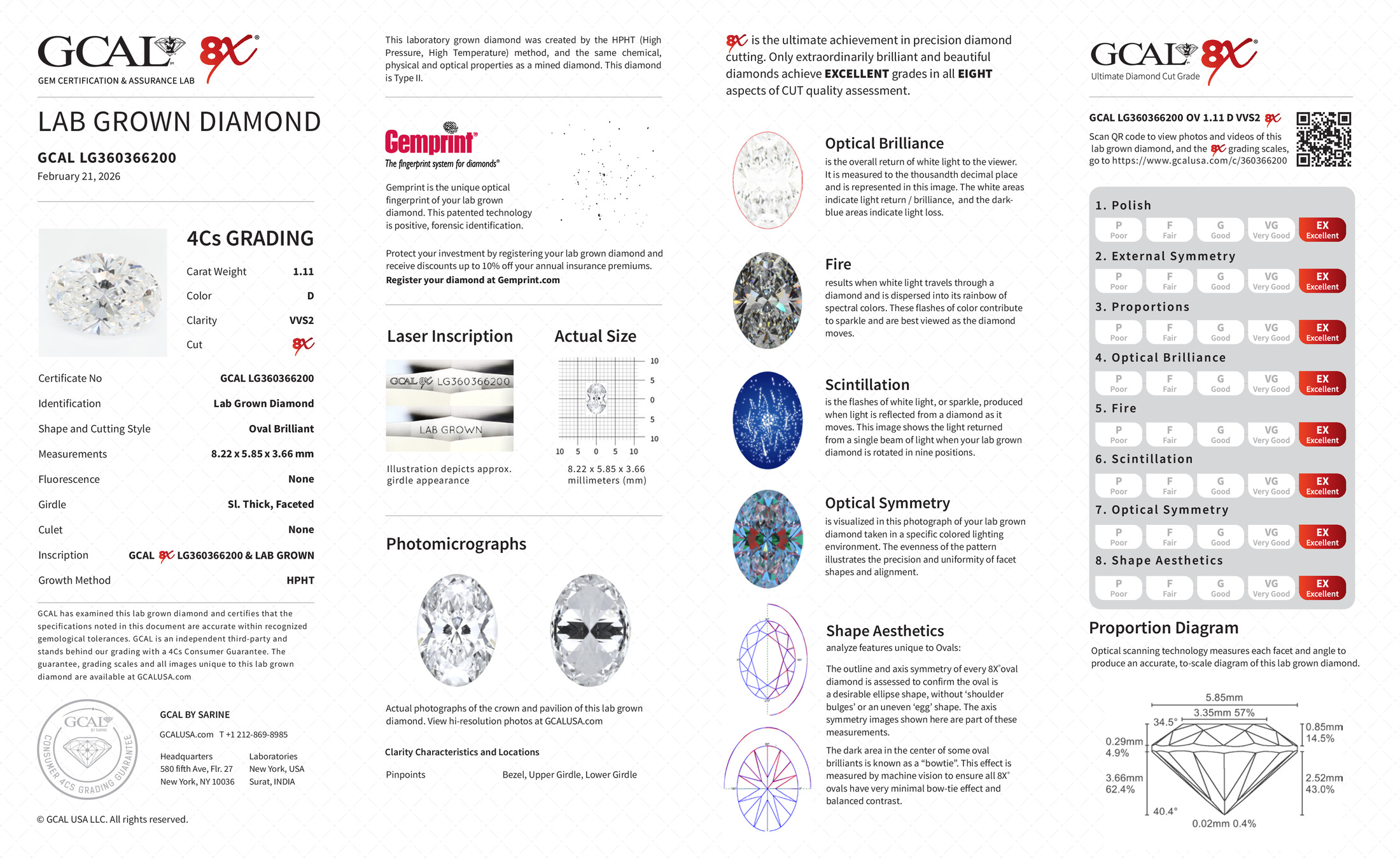 The GCAL certificate (#360366200) is an independent grading report that verifies this diamond's carat weight, color, clarity, cut, and other physical properties. It serves as a trusted third-party guarantee of the stone's quality. Always verify the certificate number on the issuing lab's website before purchasing.