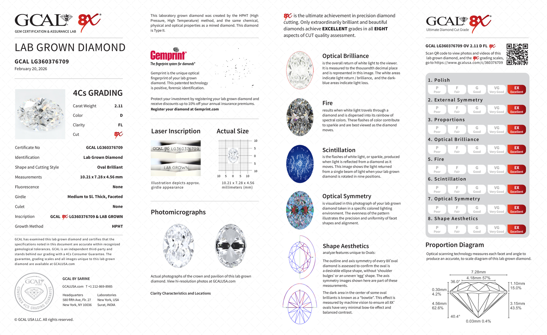 The GCAL certificate (#360376709) is an independent grading report that verifies this diamond's carat weight, color, clarity, cut, and other physical properties. It serves as a trusted third-party guarantee of the stone's quality. Always verify the certificate number on the issuing lab's website before purchasing.