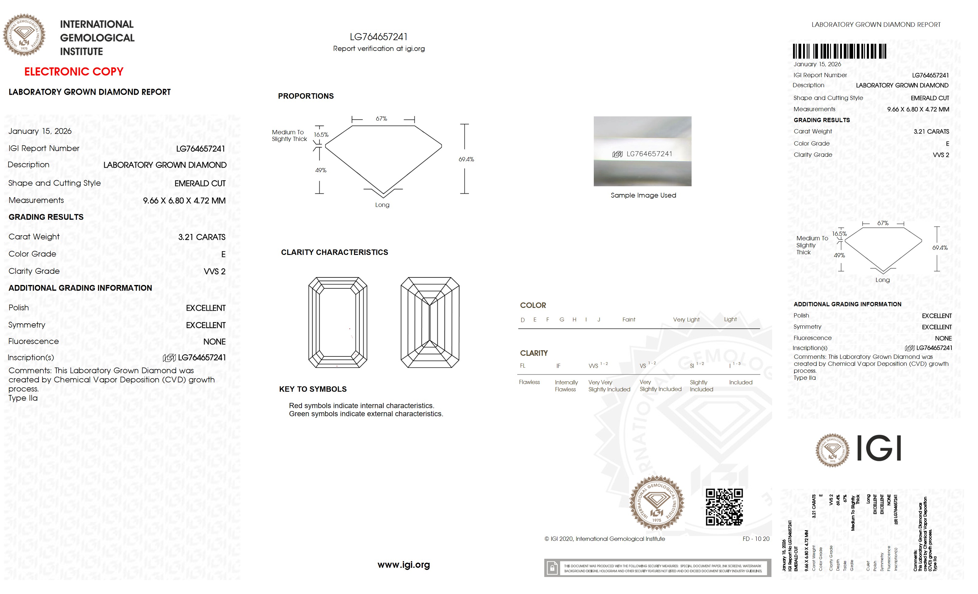 The IGI certificate (#764657241) is an independent grading report that verifies this diamond's carat weight, color, clarity, cut, and other physical properties. It serves as a trusted third-party guarantee of the stone's quality. Always verify the certificate number on the issuing lab's website before purchasing.